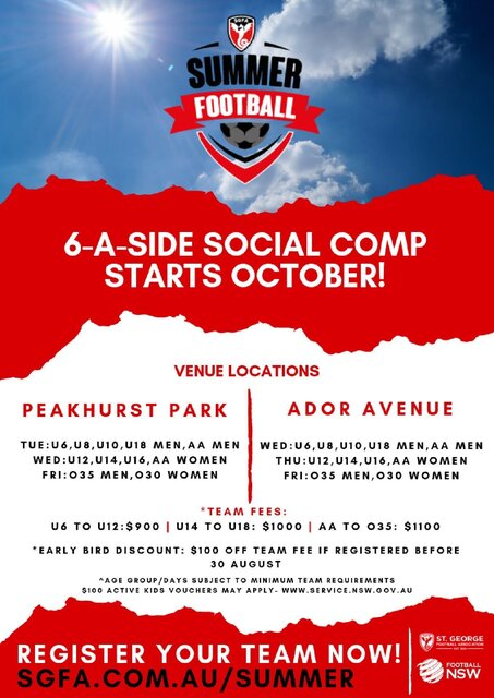 Any questions please contact the office- summerfootball@sgfa.com.au